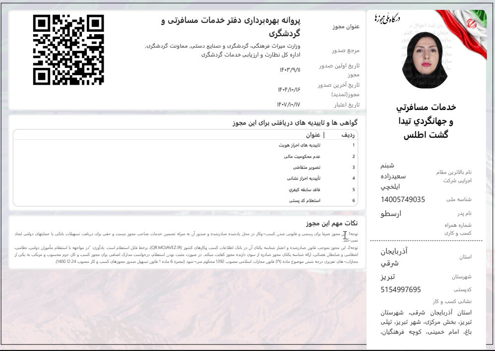 اژانس از سال 90 تاسیس شده و دارای مجوز بند ب میباشد.