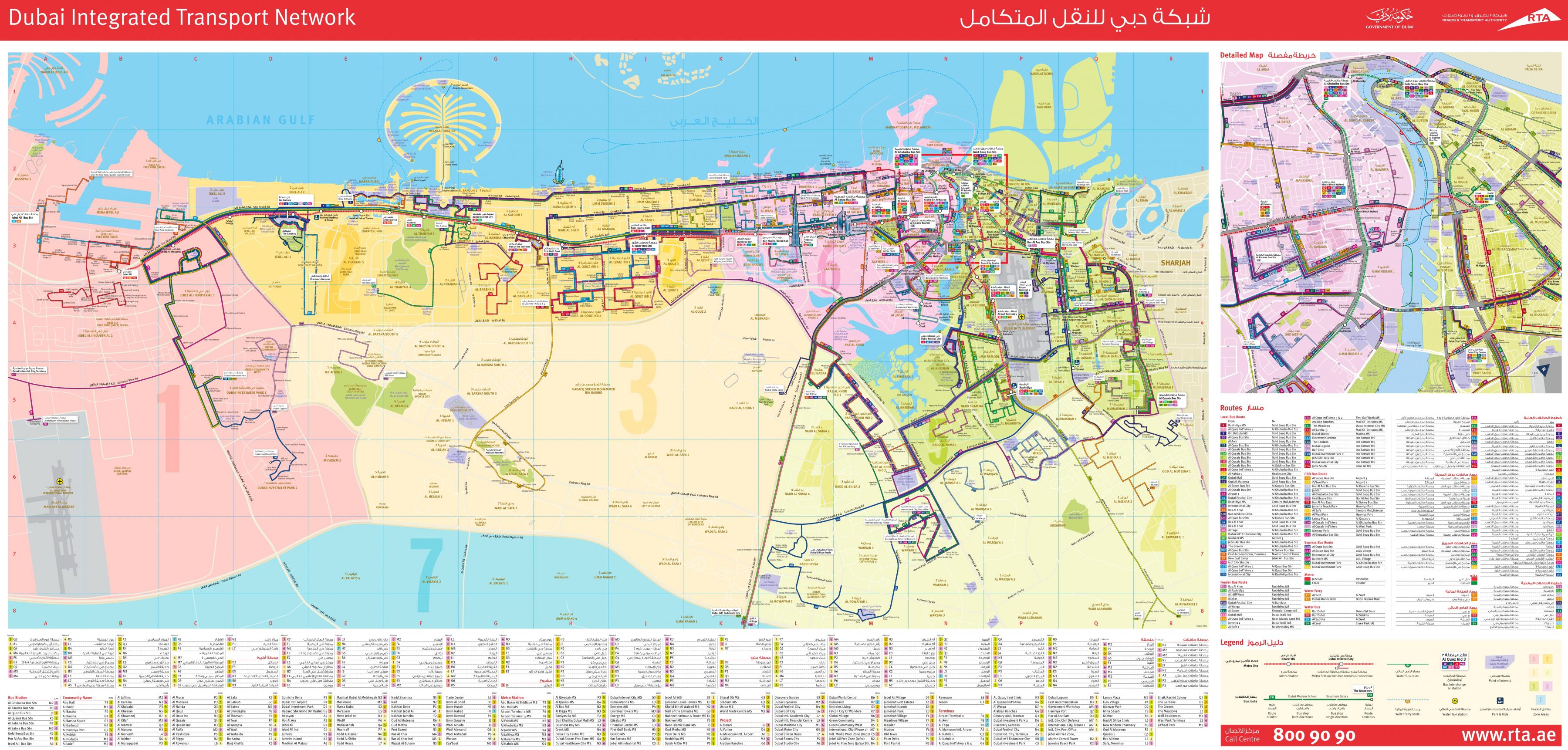 ناوگان اتوبوسرانی دبی، علاوهبر اینکه بهعنوان وسایل نقلیه عمومی در دبی بسیار کاربردی است، یکی از مقرونبهصرفهترین آنها نیز محسوب میشود. دبی، مالک یک ناوگان اتوبوسرانی بزرگ با بیش از 1500 اتوبوس در 4 نوع مختلف است که تردد آنها 82 درصد از محیط شهری دبی را پوشش میدهند. بهطور دقیقتر، این 82 درصد از محیط شهری، شامل 119 خط داخلی میشوند که 35 خط به ایستگاههای مترو ختم میشوند، 12 خط مربوط به مسیرهای بینشهری مثل اتوبوس دبی به شارجه و سایر بخشهای امارات هستند و در بین همه این مسیرها، 8 خط ویژه برای اتوبوسهای سریعالسیر و پرسرعت است. نقشه اتوبوسهای دبی را با امکان دانلود، در ادامه آوردهایم.