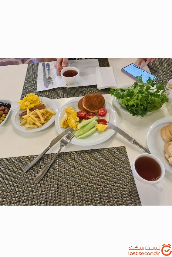 هه هه من استخرش ندیدم چون فرصت هم کم بود حتی نپرسیدم😊 صبحانه از ۸ تا ۱۱ بود تنوع خوبی داشت (یه روز سیب زمینی سوسیس سوپ تخم مرغ ابپز مربا عسل شکلات صبحانه میوه پنکیک مرغ بال، تخم مرغ املت ساده، چای شیر قهوه ابمیوه و ...)